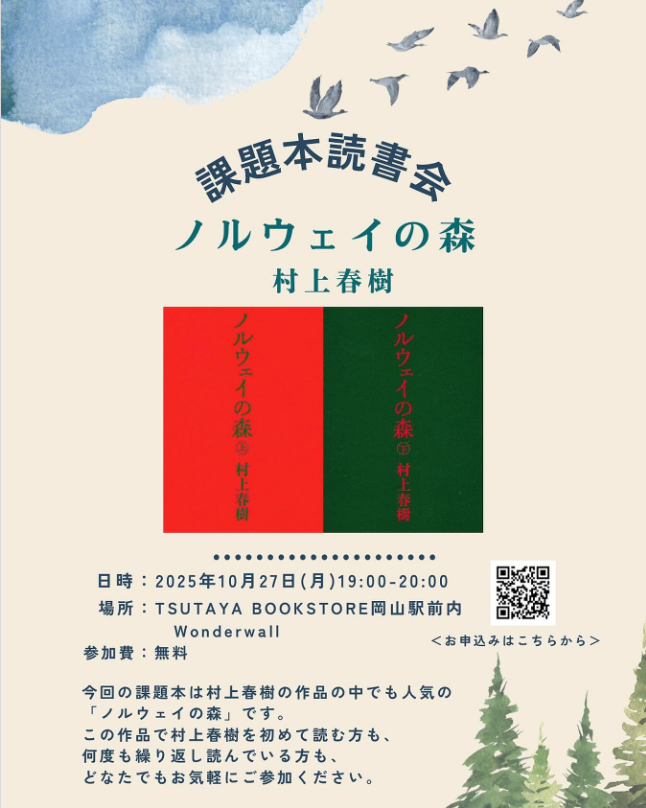 初めて読む方も、何度も繰り返し読んでいる方も、どちらでもお気軽にご参加ください。 ぜひ日本はおろか世界中で読み継がれる「ノルウェイの森」を一読後、語らいましょう !